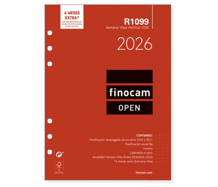 RECAMBIO ANUAL 2026 R1099 OPEN1000 155X215MM SEMANA VISTA VERTICAL FINOCAM 711520026 (Espera 4 dias)