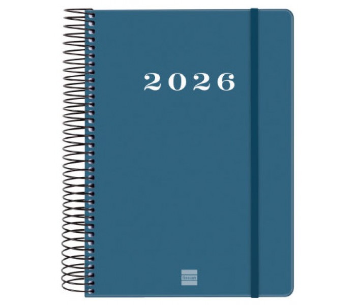 AGENDA 2026 TEMPUS 1/4 155X217MM DIA PAGINA AZUL FINOCAM 626301026Agenda de tapa extradura de polipropileno, con espiral doble y goma elástica. Con do..