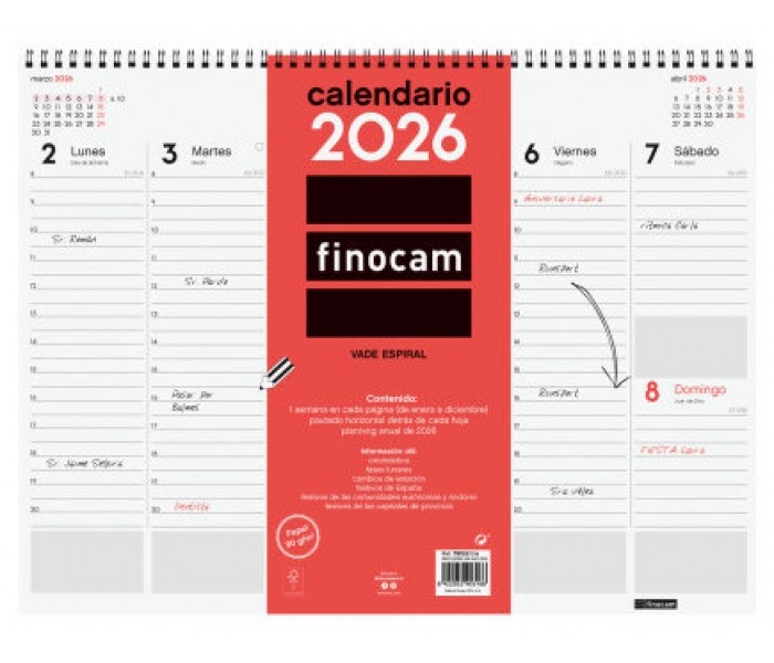 VADE 2026 ESPIRAL SEMANA VISTA VERTICAL 420X310MM FINOCAM 780260026 (Espera 4 dias)