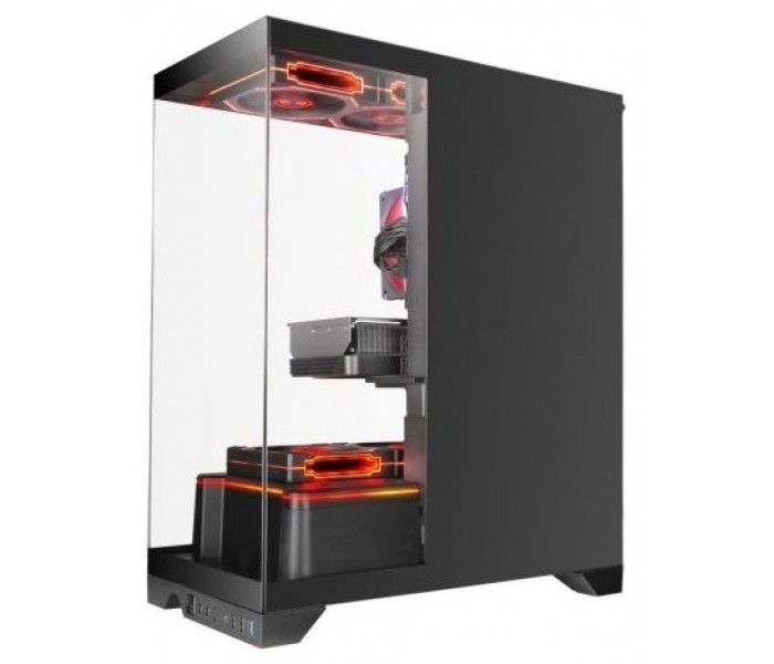 La MC-PRISMA ofrece una experiencia única al integrar tres paneles de cristal templado continuo sin marcos. Este diseño envolvente permite contemplar el interior desde múltiples ángulos, realzando cada componente con una nitidez y elegancia incomparables. Perfecta para configuraciones ARGB, convierte tu equipo en un espectáculo visual que refleja la personalidad y creatividad de cada usuario.