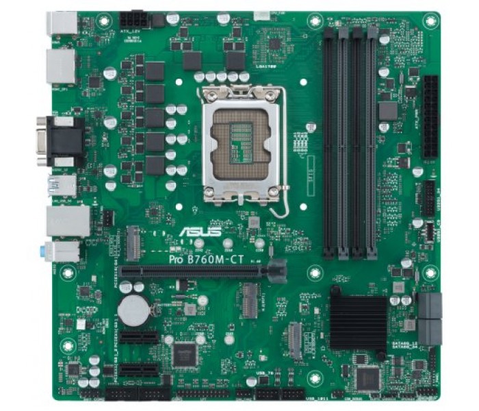 ASUS PRO B760M-CT-CSM. Fabricante de procesador: Intel, Socket de procesador: LGA 1700, Procesador compatible: Intel® Celeron®, Intel® Pentium® Gold, Intel® Core™ i3, Intel® Core™ i5, Intel® Core™.... tipos de memoria compatibles: DDR5-SDRAM, Memoria interna máxima: 128 GB, Tipo de ranuras de memoria: DIMM. Interfaces de disco de almacenamiento soportados: M.2, SATA III, Tipos de unidades de almacenamiento admitidas: HDD & SSD. Tipo de interfaz ethernet: Gigabit Ethernet. Componente para: PC, Factor de forma: micro ATX, Familia del chipset: Intel
