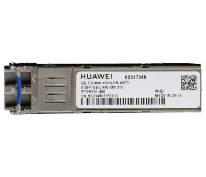 HUAWEI eKit S-SFP-GE-LH40-SM1310. Tipo de transceptor SFP: Fibra óptica, Rango máximo de transferencia de datos: 1000 Mbit/s, Conector fibra óptica: LC. Color del producto: Metálico, Material de la carcasa: Metal, Factor de forma: eSFP. Cantidad por paquete: 1 pieza(s)