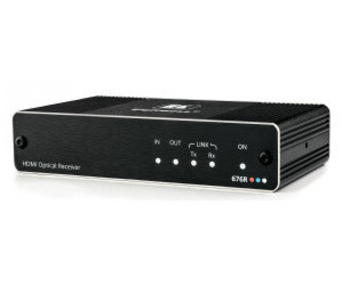 676R es un receptor de fibra HDMI de alto rendimiento para una extensión de ultra alcance de señales HDMI 4K a 60Hz (4: 4: 4). El 676R recibe la señal óptica transmitida de un transmisor compatible y la convierte en señales HDMI y RS−232. El 676R incluye un transceptor SFP + multimodo, pero se puede utilizar con cualquier transceptor SFP + certificado de Kramer, como un transceptor SFP + monomodo.