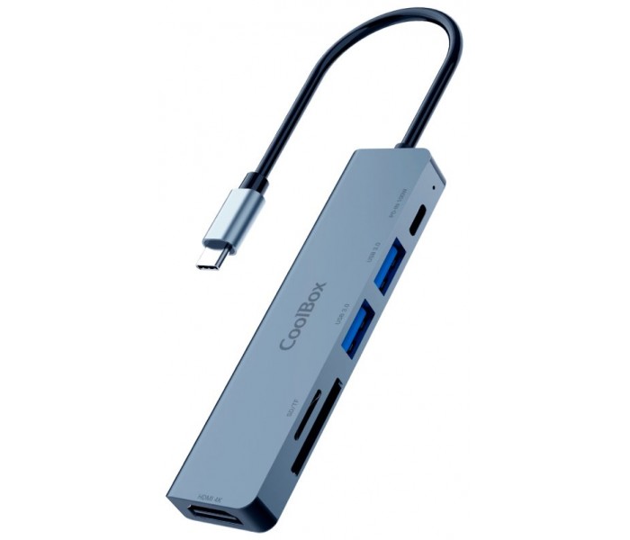 COOLBOX MINIDOCK C61 ALUMINIO USB-C A HDMI 4K/2xUSB-A/USB-C PD/SD/MICROSD PC/MAC/CONSOLAS