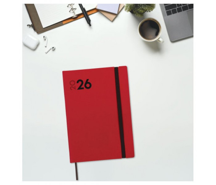Agenda profesional encuadernada de tapa blanda. Tacto suave muy agradable. Estilo moderno y universal. Perfecta apertura para poder escribir cómodamente. Con goma elástica, cinta punto y esquinas microperforadas para localizar rápidamente el día/semana en curso. Contiene información de interés en la anualidad y otros contenidos extra. Formato similar a DIN A5 con las ventajas de una agenda portable y una de sobremesa. Duración: Enero 2026 - Diciembre 2026 (12 meses). Interior: 1 Día Página. Amplio espacio de escritura para cada día. Con horas. Con información de los festivos de España. La anualidad contiene: onomástica, festivos nacionales, cambios de estación e inicios de los años nuevos chino, musulmán, ortodoxo y hebreo. Dispone de contenidos extra: datos personales, horarios, fechas para destacar, calendarios, plan anual (2 años), planificación de viajes, festivos nacionales y de las CC. AA., festivos internacionales, usos del teclado, cómo buscar en Google, mapa de Europa y de husos horarios, hojas para anotaciones y tareas, y hojas para teléfonos, direcciones y e-mails. Artículo en español con anualidad multilingüe: español, francés, portugués, euskera e inglés. Formato: Y10 - 140x204 mm. Poliuretano flexible y papel. 80 g/m². Papel FSC®.