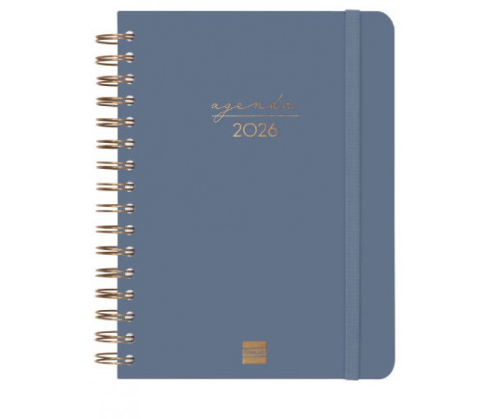 AGENDA 2026 BASIC YEAR E11 165X242MM DIA PAGINA AZUL FINOCAM 742071026Agenda de espiral de estilo moderno. Con tapas ligeras de polipropileno y goma e..