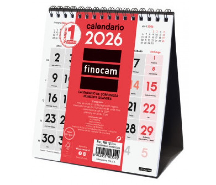 CALENDARIO 2026 SOBREMESA NEUTRO NUMEROS GRANDES XS 140X150MM FINOCAM 780120026 (Espera 4 dias)