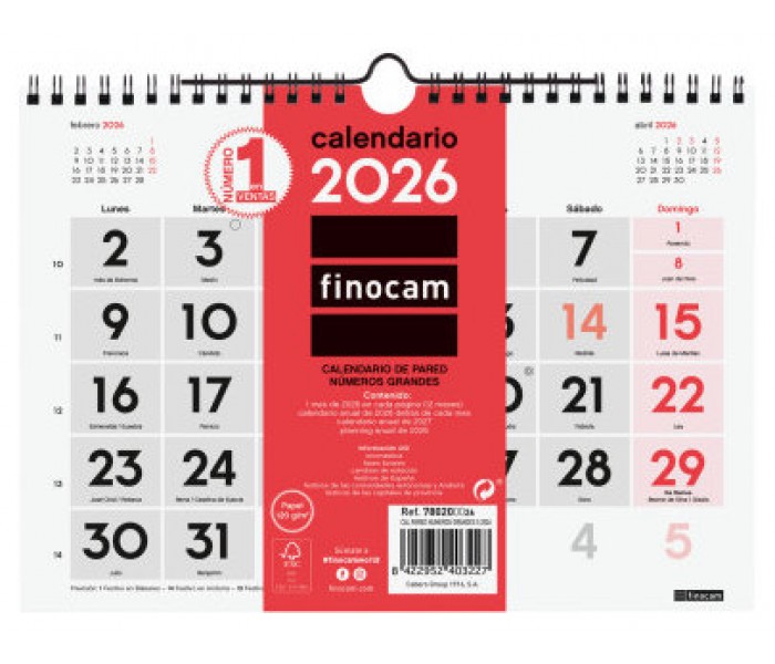 CALENDARIO 2026 NEUTRO PARED NUMEROS GRANDES S 210X150MM FINOCAM 780200026 (Espera 4 dias)