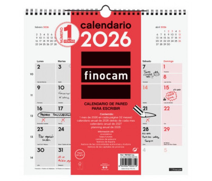CALENDARIO 2026 NEUTRO PARED ESCRIBIR 300X300MM FINOCAM 781520026.