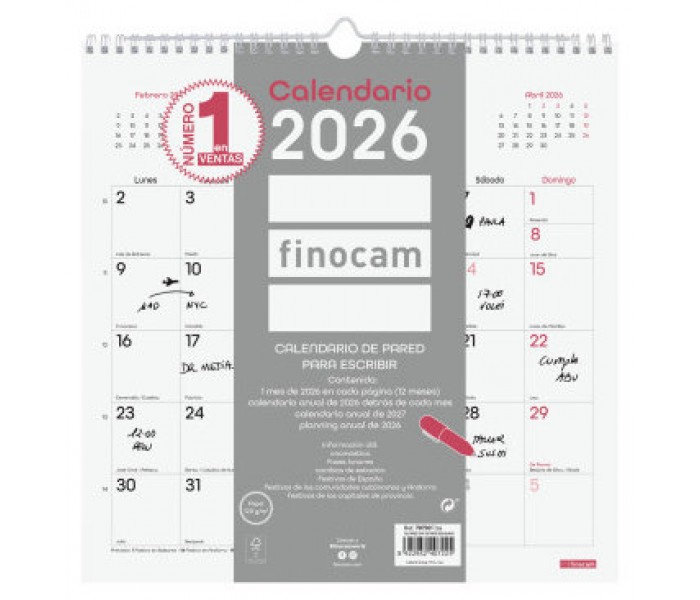 CALENDARIO 2026 SOBREMESA TRENDY DESIGN ESCRIBIR 190X190MM FINOCAM 787060126Calendario anual de sobremesa encuadernado con espiral doble y con peana r..