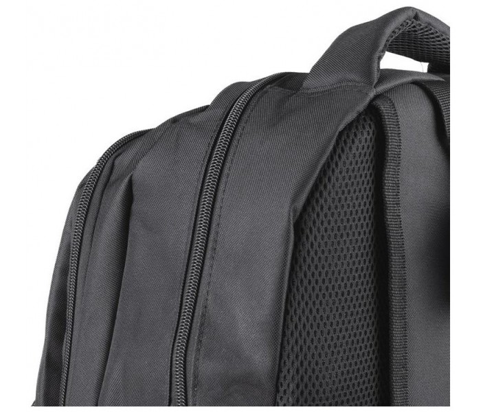 Características | - Portátil de hasta 15,6" - Dos compartimentos separados - Bolsillo exterior frontal - Bolsillos laterales de rejilla - Material exterior: tela de poliéster Oxford - Resistente a salpicaduras - Material interior: poliéster - Color interior: negro - Color exterior: negro - Medidas: 47 alto x 32 ancho x 14,5 profundo cm - Peso: 580 g |