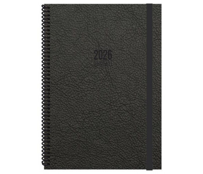 Blanco ecológico de 80 gr.Opaco, satinado. No deja traspasar la tinta. IMPRESIÓN: 2 tintas .CUBIERTA: Tapa dura de polipiel termovirante .ACABADO: Encuadernada en espiral con goma elástica , Espiral plástica D/P Idiomas: castellano e inglés. 6 páginas por semana. Datos personales, calendario 3 años, planning anual, santoral, horario diario, espacio para notas, mes en curso y posterior en cada página, citas famosas, índice telefónico.80 GRMS CASTELLANO