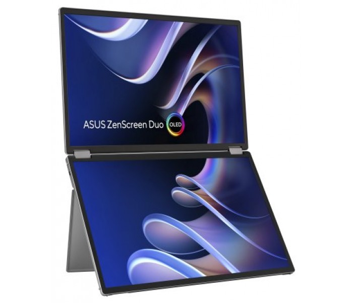 ASUS ZenScreen Duo OLED MQ149CD. Diagonal de la pantalla: 35,6 cm (14"), Resolución de la pantalla: 1920 x 1200 Pixeles, Tipo HD: WUXGA, Tecnología de visualización: OLED, Superficie de la pantalla: Brillo, Tiempo de respuesta: 1 ms, Relación de aspecto nativa: 16:10, Ángulo de visión, horizontal: 176°, Ángulo de visión, vertical: 176°. Color del producto: Plata