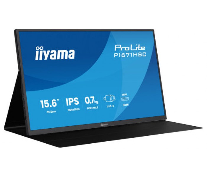 iiyama ProLite P1671HSC-B1. Diagonal de la pantalla: 39,6 cm (15.6"), Resolución de la pantalla: 1920 x 1080 Pixeles, Tipo HD: Full HD, Tecnología de visualización: LCD, Tiempo de respuesta: 3 ms, Relación de aspecto nativa: 16:9, Ángulo de visión, horizontal: 178°, Ángulo de visión, vertical: 178°. Altavoces incorporados. Color del producto: Negro