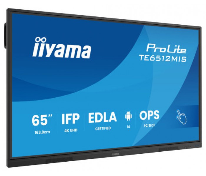 MONITOR INTERACTIVO IIYAMA 65" EDLA, ANDROID 14, 8/128GB, 40-P,3840X2160,UHD,MM 2X 20W,VGA,HDMI 2X /1XOUT, 2X USB-C,MINI-JACK OPTICAL OUT,USB TOUCH, 400CD/M2,LANDSC MODE,MEDIA PLAY USB, AG,LAN,RS232C,IIWARE,WIFI/BT,VESA 600X400,SLOT OPC (TE6512MIS-B4