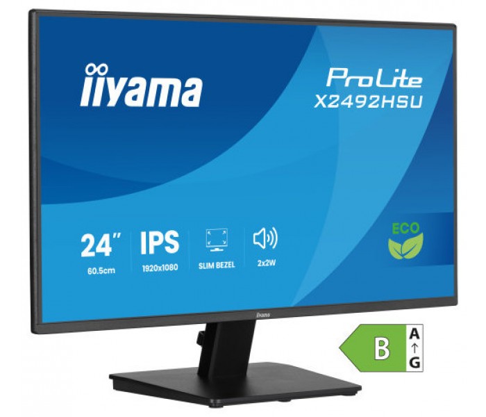 iiyama ProLite X2492HSU-B1. Diagonal de la pantalla: 61 cm (24"), Resolución de la pantalla: 1920 x 1080 Pixeles, Tipo HD: Full HD, Tecnología de visualización: LED, Tiempo de respuesta: 3 ms, Relación de aspecto nativa: 16:9, Ángulo de visión, horizontal: 178°, Ángulo de visión, vertical: 178°. Altavoces incorporados. Conector USB incorporado, Versión de conector USB: 3.2 Gen 1 (3.1 Gen 1). montaje VESA. Color del producto: Negro
