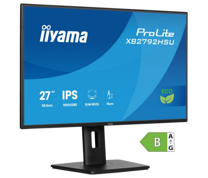 iiyama ProLite XB2792HSU-B1. Diagonal de la pantalla: 68,6 cm (27"), Resolución de la pantalla: 1080 x 1920 Pixeles, Tipo HD: Quad HD, Tecnología de visualización: LED, Superficie de la pantalla: Mate, Tiempo de respuesta: 3 ms, Relación de aspecto nativa: 16:9, Ángulo de visión, horizontal: 178°, Ángulo de visión, vertical: 178°. Altavoces incorporados. Conector USB incorporado, Versión de conector USB: 3.2 Gen 1 (3.1 Gen 1). montaje VESA, Ajustes de altura. Color del producto: Negro