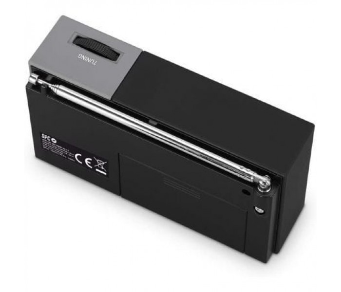 | Características | - Radio FM/AM/ - Antena telescópica de alta sensibilidad. - Indicador de encendido. - Control de volumen. - Conexión para auriculares 3.5mm Alimentación - Funciona con pilas alcalinas AA tipo LR6 1.5V (no incluidas) Dimensiones y peso - 126 x 39 x 71 mm - 165 g Contenido - Radio SPC Jetty Lite - Guía rápida |