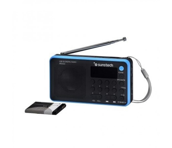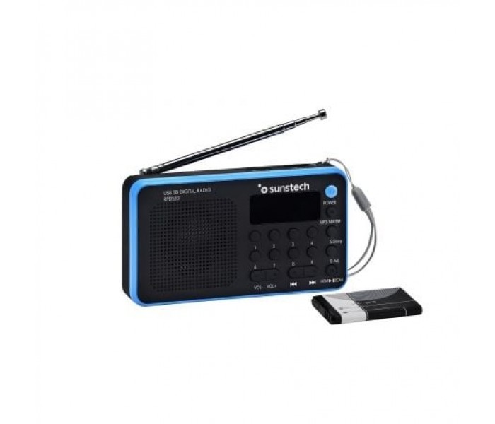Radio portátil digital AM / FM súper compacta con puerto USB y ranura para tarjetas microSD / SD / MMC.