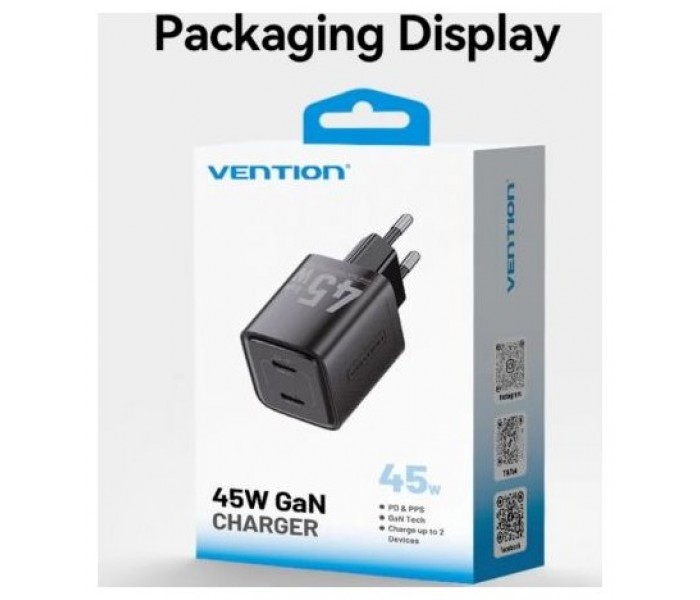 Cargador de Pared Universal GaN para Viaje Vention FJGB0/ Toma de Corriente Universal/ 3xUSB Tipo-C/ 1xUSB/ 120WCargador de Pared Universal Vention FJ..
