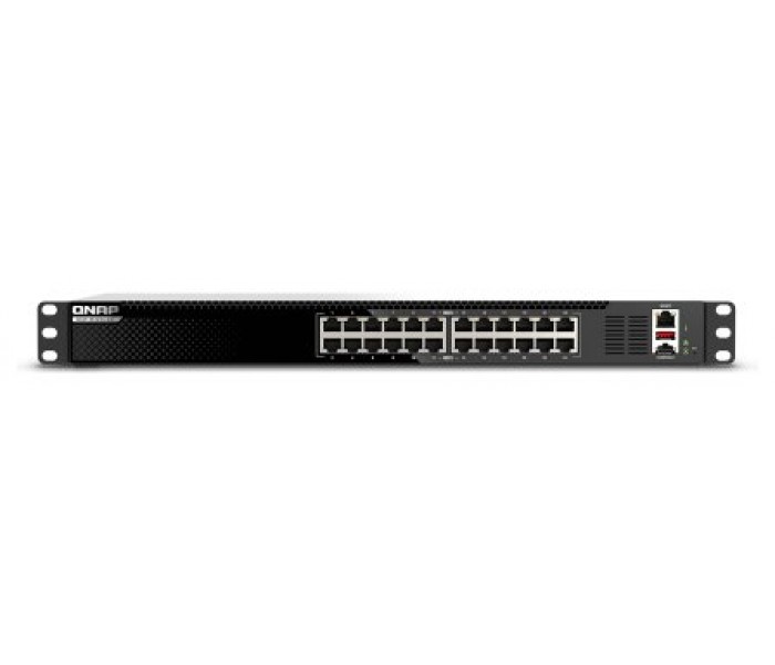 QNAP QSW-M3224-24T. Tipo de interruptor: Gestionado, Capa del interruptor: L3. Puertos tipo básico de conmutación RJ-45 Ethernet: 10G Ethernet (100/1000/10000), Cantidad de puertos básicos de conmutación RJ-45 Ethernet: 24, Puerto de consola: USB. Tabla de direcciones MAC: 32000 entradas, Capacidad de conmutación: 480 Gbit/s. Estándares de red: IEEE 802.1Q, IEEE 802.1p, IEEE 802.1w, IEEE 802.3, IEEE 802.3ab, IEEE 802.3ad, IEEE 802.3an, IEEE.... Montaje en rack, Factor de forma: 1U