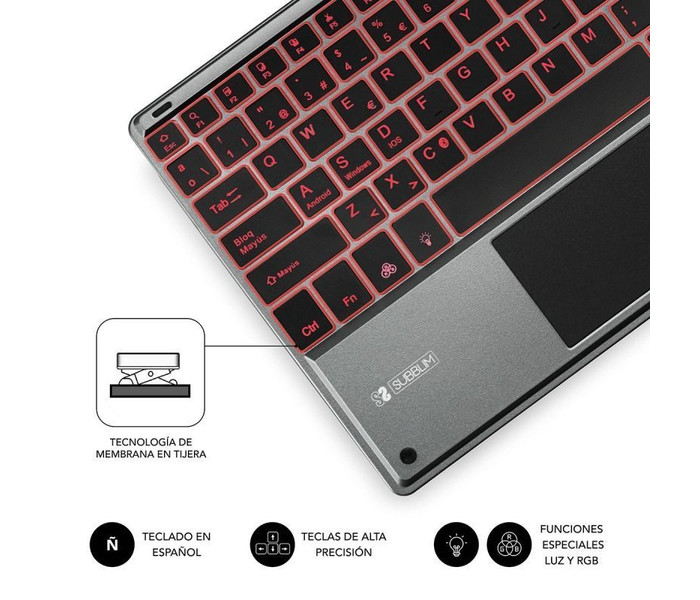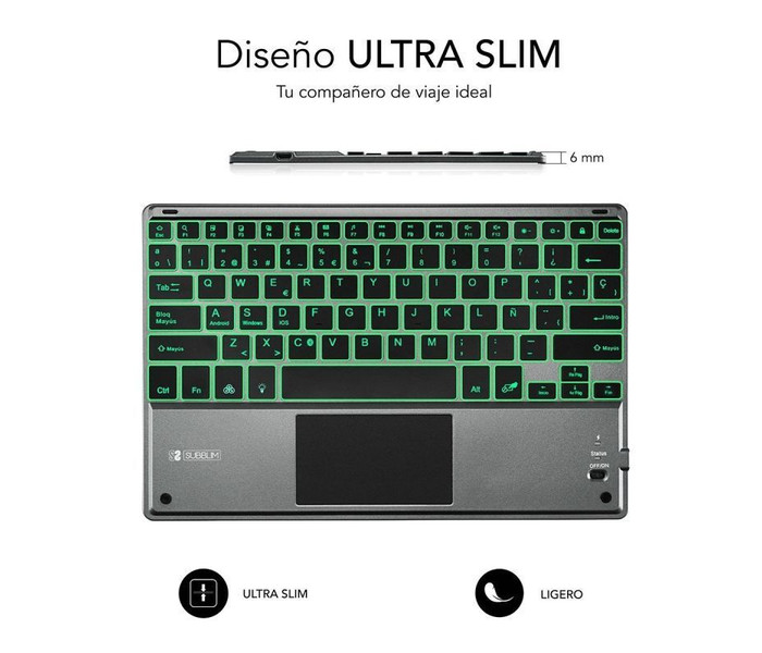 - Indicadores LED: Actividad, Bluetooth, Carga, Poder