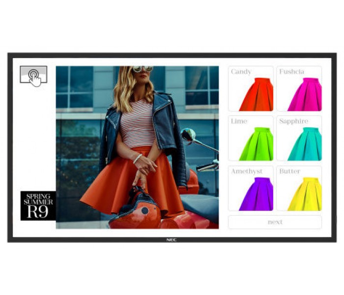 NEC MultiSync ME431 IR-2. Diseño de producto: Diseño de quiosco. Diagonal de la pantalla: 109,2 cm (43"), Tecnología de visualización: LED, Resolución de la pantalla: 3840 x 2160 Pixeles, Brillo de pantalla: 400 cd / m², Pantalla táctil. Horas de funcionamiento (horas/días): 18/7. Color del producto: Negro