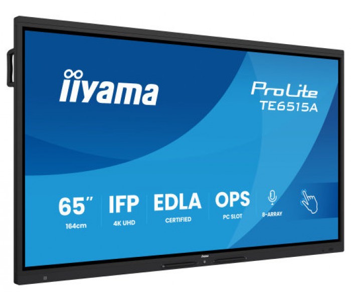IIYAMA MONITOR INTERACTIVO 65" EDLA, ANDROID 14, 16/128GB UHD IPS, MM 2X 20W + 20W SUBWR, 2X HDMI, DP , 1X USB-C, 550CD/M, HORIZ , MEDIA PLAY USB PORTS, ANTIGLARE, LAN, RS232C, IIWARE WIFI-6/BT 5.0, OPS SLOT, VESA 600X400 (MOUNT INCLUDED) (TE6515A-