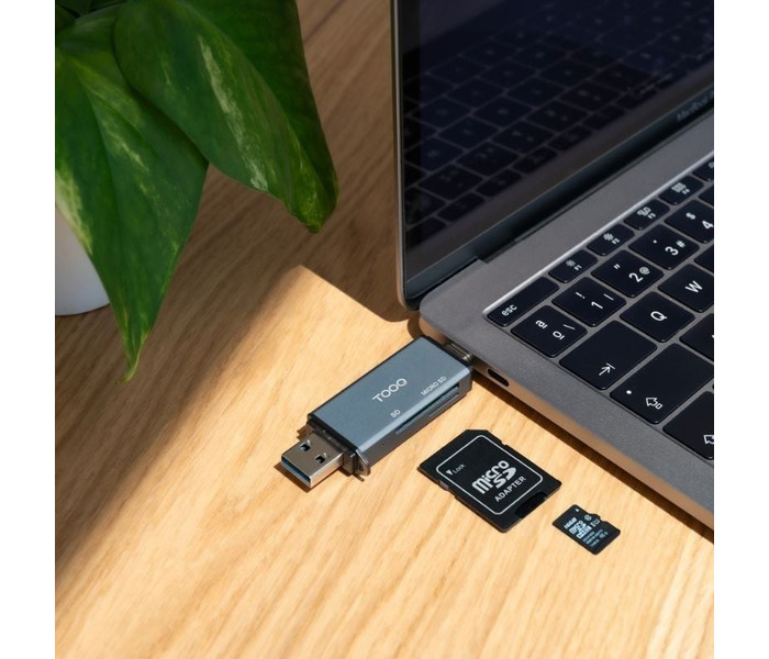 LECTOR TARJETAS USB3.0 USB-C+USB-A SD/TF GRIS TOOQ