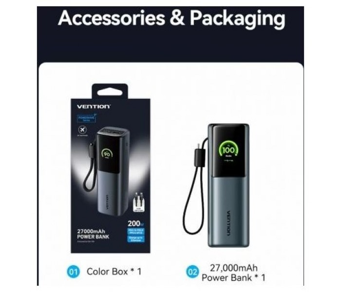 Powerbank 20000mAh Vention FHLW0/ 22.5W/ Blanca20000mAh Power Bank (Micro-USB + USB-C + USB-A + USB-A) 22.5W Blanco LED DisplayListo para Viajar20000m..