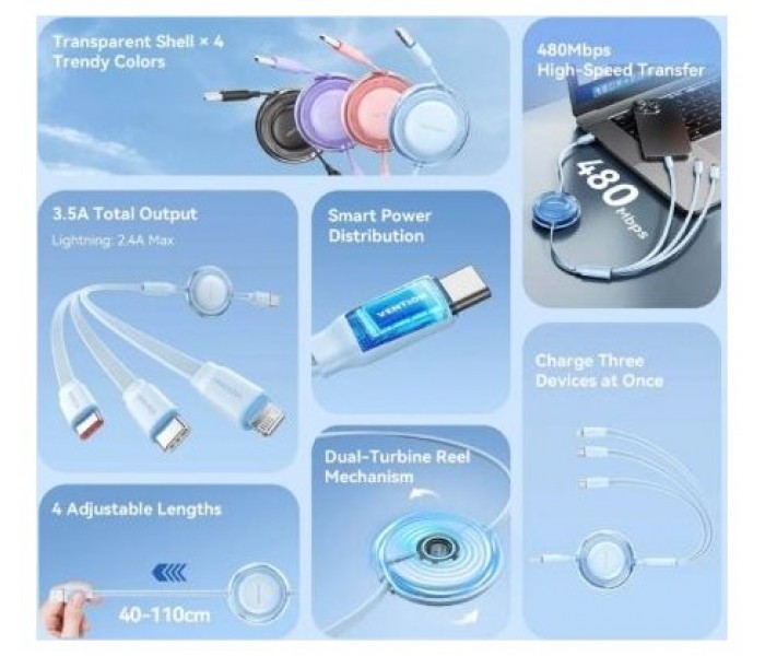 Cable USB Vention TRJBBE Retráctil